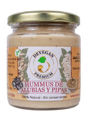 En Devegan damos valor a los cultivos locales y sumamos in situ a la gastronomía leonesa. Por eso, hemos dado una vuelta de hoja a la receta tradicional del hummus de garbanzos y hemos apostado por la combinación de la alubia blanca de la Bañeza (que destaca por su cremosidad) con las semillas de girasol (conocida comúnmente como pipas) para crear un hummus único con toques tostados y un valor nutricional completo.